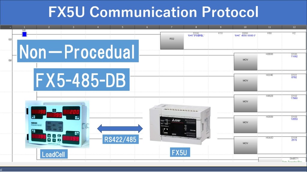 By following these steps and notes, you can effectively implement Non-Procedural Communication between the FX5U PLC and a Loadcell using the FX5-485-DB module.