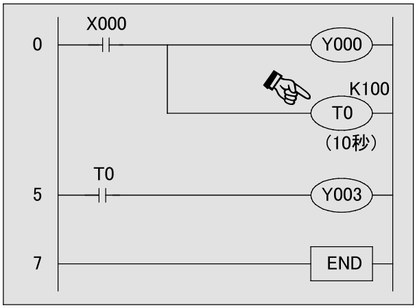 Chúng ta có thể coi Y0 như 1 Timer với thời gian trễ bằng “0”. Khi X0 được kích hoạt, thì sau “0 s” sau đó Y0 được bật.