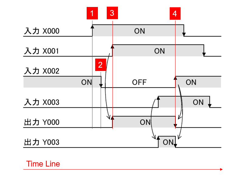 Y0 phải được tắt ( Reset) bằng một thiết bị khác bằng lệnh Reset, ví dụ như X3 ở TimeChart.