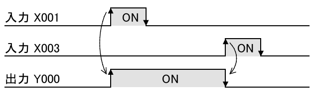 Y0 chuyển trạng thái ON khi X1 được bật ON, sau khi X1 được Tắt OFF nhưng Y0 vẫn duy trì trạng thái ON. Đó là lệnh SET
