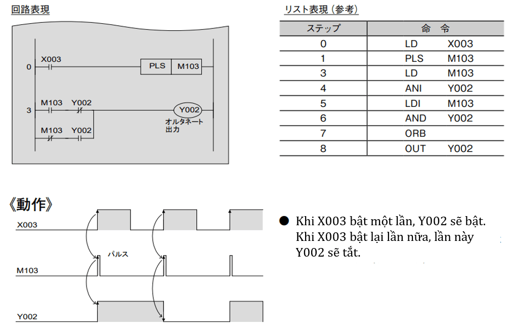 ví dụ 3 : Mạch Đảo Trạng Thái (alternate circuit), Sử Dụng Lệnh xuất xung (pulse output circuit).