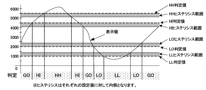 - (HI Judgment − HI Hysteresis) > LO Judgment