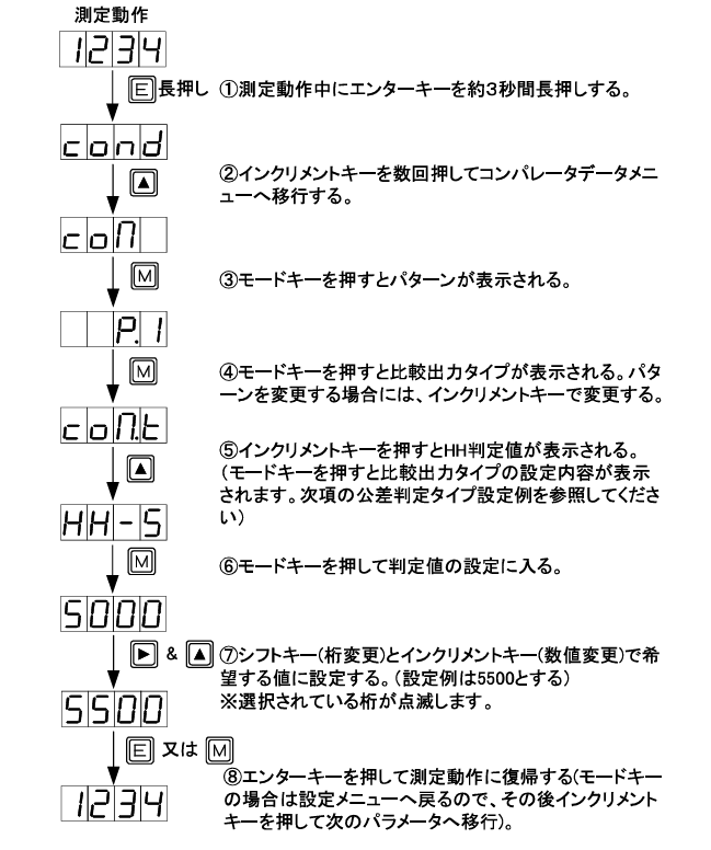 - (Press Mode again to return to comparison type setting. Refer to tolerance-based judgment example below.)