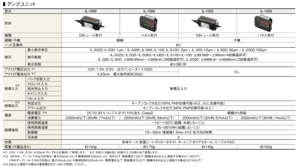 | Minimum display resolution | IL-S025/030: 1 µm IL-065/100: 2 µm IL-300: 10 µm IL-600: 50 µm IL-2000: 100 µm | |||